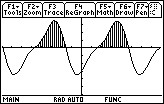 C:Shade The operation of Shade is dependent on how many functions are graphed. If one function is graphed, it will shade the area above or below the x-axis. If there are two or more functions graphed, the area between two of the functions over a designated interval. The operation of Shade is dependent on how many functions are graphed. If one function is graphed, it will shade the area above or below the x-axis. If there are two or more functions graphed, the area between two of the functions over a designated interval.