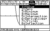 1:Value This will evaluate the function at a particular value of x. However, the value entered must be in the interval [xmin, xmax].