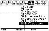 8:Inflection finds the inflection point over a designated interval. This is where the second derivative changes signs.