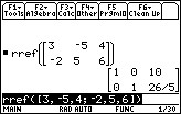 Access rref via ![]() or ![]() ![]() 4:Matrix, then 4:rref |