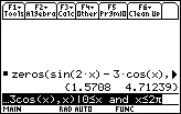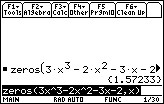 3. You can find the zeros of an expression. The zeros function is: zeros(expression, var). It is accessed by pressing
