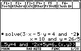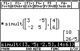 matrix and the results as a constant column matrix. Access simult via ![]() or ![]() ![]() 4:Matrix, then 5:simult |