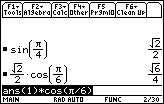 When an expression is evaluated, the answer is stored in a variable named ans(1). This number can be inserted into the entry line by pressing