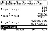 to evaluate an expression, the expression remains in the entry line and is highlighted as shown below. You can type over this entry or you can use it again.