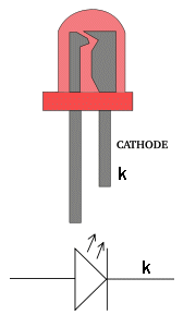 or a plastic housing. They have two leads: cathode (k) and an anode (A).