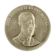 The IEEE Heinrich Hertz Medal was established by the Board of Directors in 1987 "for outstanding achievements in Hertzian (radio) waves." It may be presented annually to an individual for achievements which are theoretical or experimental in nature." The medal is named in honor of the renowned scientist whose experiments verified Maxwell's theory and proved that all forms of electromagnetic radiation are propagated as waves at a finite velocity - the speed of light. |